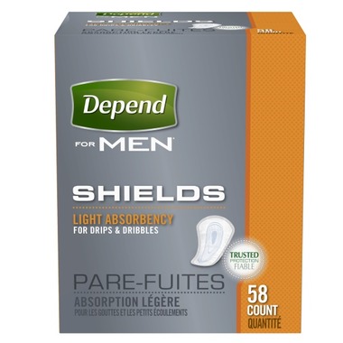 Depend® Shields for Men provide light absorbency for drips and dribbles of wetness. Shields are ultra-thin absorbent and shaped to fit a man’s body. A strong adhesive locks the shield into your own close fitting underwear. Each shield comes individually wrapped in a discreet-to-carry package.