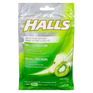 Halls Mentho-Lyptus Drops Kiwi Apple temporarily relieves coughs, minor irritations or sore throat.