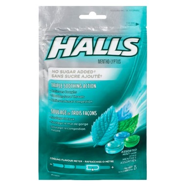 Halls Mentho-Lyptus Drops Assorted Mint temporarily relieves coughs, minor irritations or sore throat.