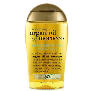 This one-of-a-kind oil is our secret to hair’s silky perfection. Infused with argan oil, OGX Renewing Argan Oil of Morocco Penetrating Oil helps nutrients seep into the hair shaft to protect each strand from styling heat and UV damage and seal in the shine.