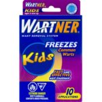 Wartner Wart Removal System Kids Freezes Common Warts Applications. A fast and effective treatment for the removal of common warts for children over the age of 4. Based on the proven freezing method used by doctors, it freezes the wart on the spot. Approximately 10-14 days after treatment with Wartner wart removal system, warts are usually gone.  10 applications.